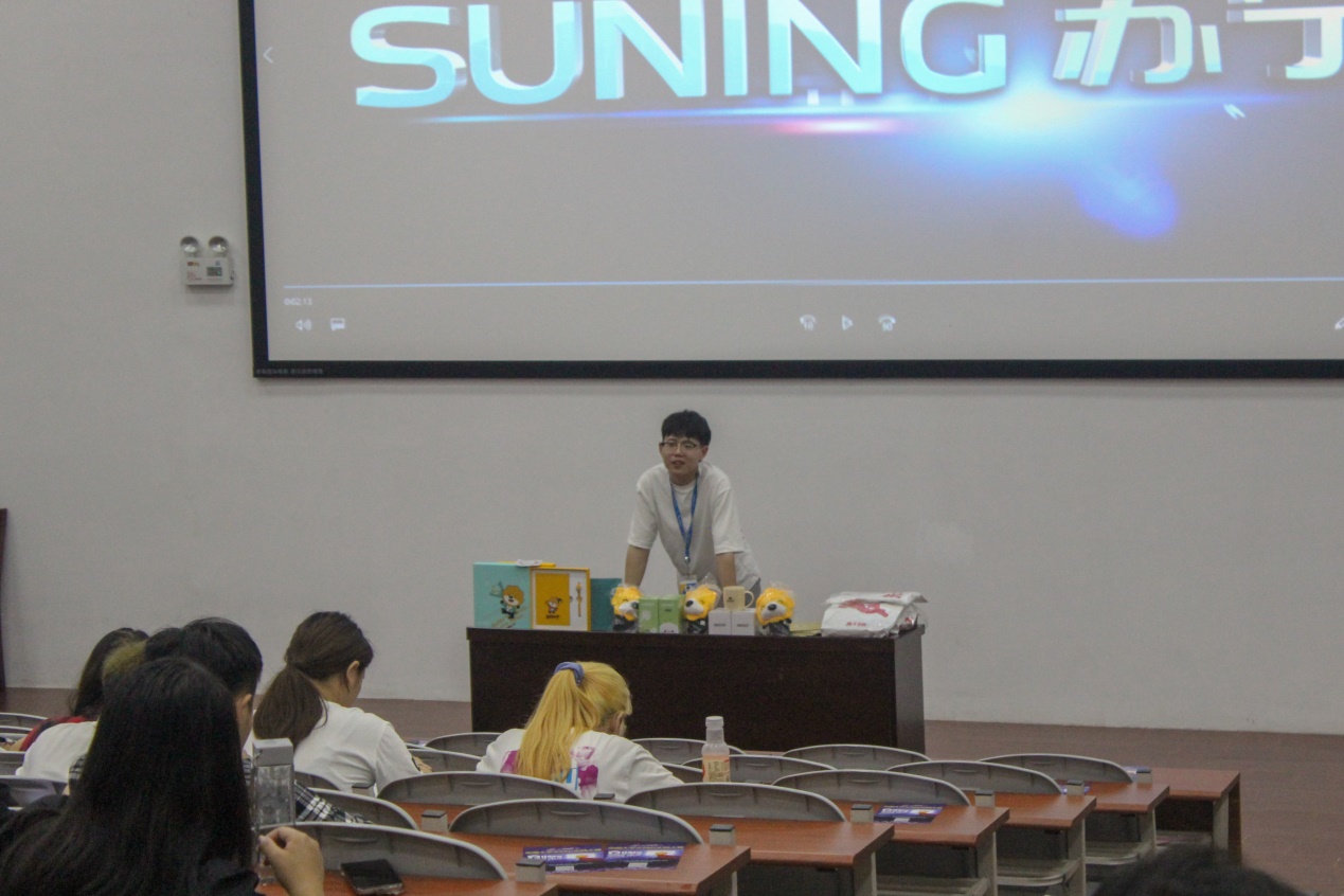 本次宣讲以“助力高校以赛促学、以赛促教、以赛促创”为初衷,旨在帮助大家更好地了解报名、参赛形势、大赛时间等相关事宜。宣讲会上,郭万杰老师向18、19级的同学们展示了集团的发展概况,并重点介绍了苏宁集团此次全国大学生创业实践大赛的相关流程。活动现场氛围轻松愉快,让在场的同学深深地感受到了苏宁的品牌影响力。希望大家能够抓住“苏宁易购杯”全国大学生创业实践大赛这个宝贵机会,尽早明确未来的就业发展方向,为未来的职业发展奠定好坚实基础。
