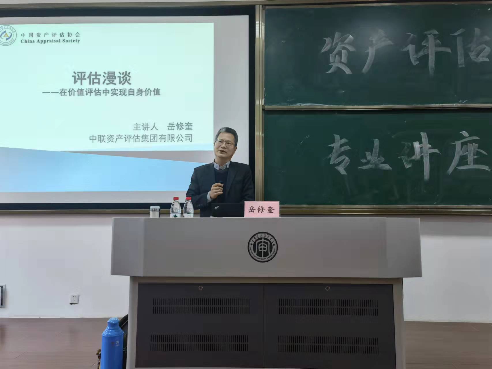 岳修奎总经理以自身实践经验和实务经历为切入点,辅以轻松幽默的语言,讲座刚开始便深深抓住了在场师生的注意力。讲座内容紧紧围绕如何成为有价值的评估师、如何在资产评估行业实现人生价值,以《中国资产评估法》中对于“资产评估”的定义为出发点,岳修奎总经理首先向全体在场师生明确评估师的主要工作职责和业务范围,并从专业知识、专业技能、为人处世和执业资格等四个方面为成为优秀的评估师指明了方向和职业发展路径。然后,从评估目的、评估程序、价值类型、评估方法、资产评估报告等主要评估要素作为分析角度,结合自身将近三十年伴随中国资产评估行业发展的丰富经验向全体师生勾勒出了一幅涉及资产评估各个环节的生动画卷,专业知识和实务案例相结合,让全体在场师生受益匪浅。最后,岳修奎总经理以评估项目现场照片向在座师生展示了丰富多彩的评估师生活,同时也指出了资产评估行业对于知识和技能的多层次需求。