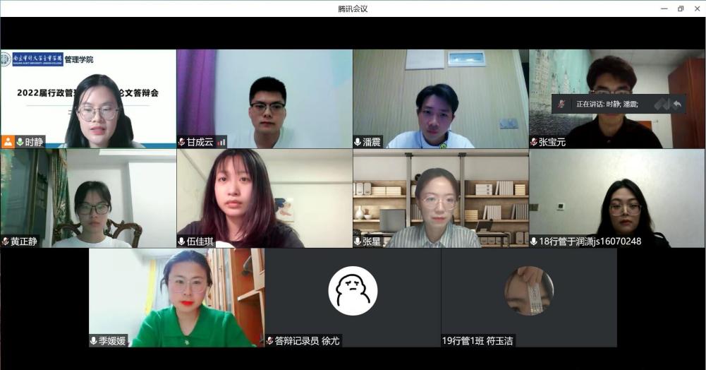 行政管理教研室组成一支专兼职的答辩教师小组,答辩教师从论文框架、论文逻辑、论文内容、文字规范、格式规范等方面对学生提出修改意见,2022届行政管理专业共61人,已经全部完成毕业论文答辩。答辩结束后,针对学生的毕业论文格式,行政管理教研室开展在线论文格式修改会议,力求把本专业毕业论文工作做好。