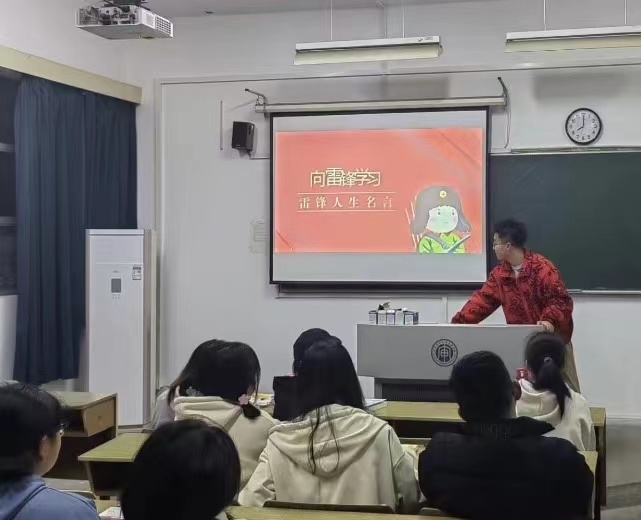 各班主持人紧紧围绕“雷锋故事我来讲,雷锋精神我传承”主题展开班会。主题班会分为三个部分,第一部分是播放《学习雷锋好榜样》,各班主持人向同学们介绍雷锋的生平简介;第二部分是讲述雷锋故事,探索雷锋精神的实质,通过分享雷锋语录,深刻感悟雷锋精神中“一团火”的忠诚为党精神、“一块砖”的爱岗敬业精神、“一颗钉”的刻䒷钻研精神、“一滴水”的团结友善精神、“一片叶”的无私奉献精神;第三部分是主持人对同学们进行有关雷锋知识的问答,引导学生们挖掘“雷锋精神”的当代价值,并鼓励他们传承好“雷锋精神”。本次班会获得了热烈反响,在主持人与同学们的热烈互动中,班会顺利落下帷幕。