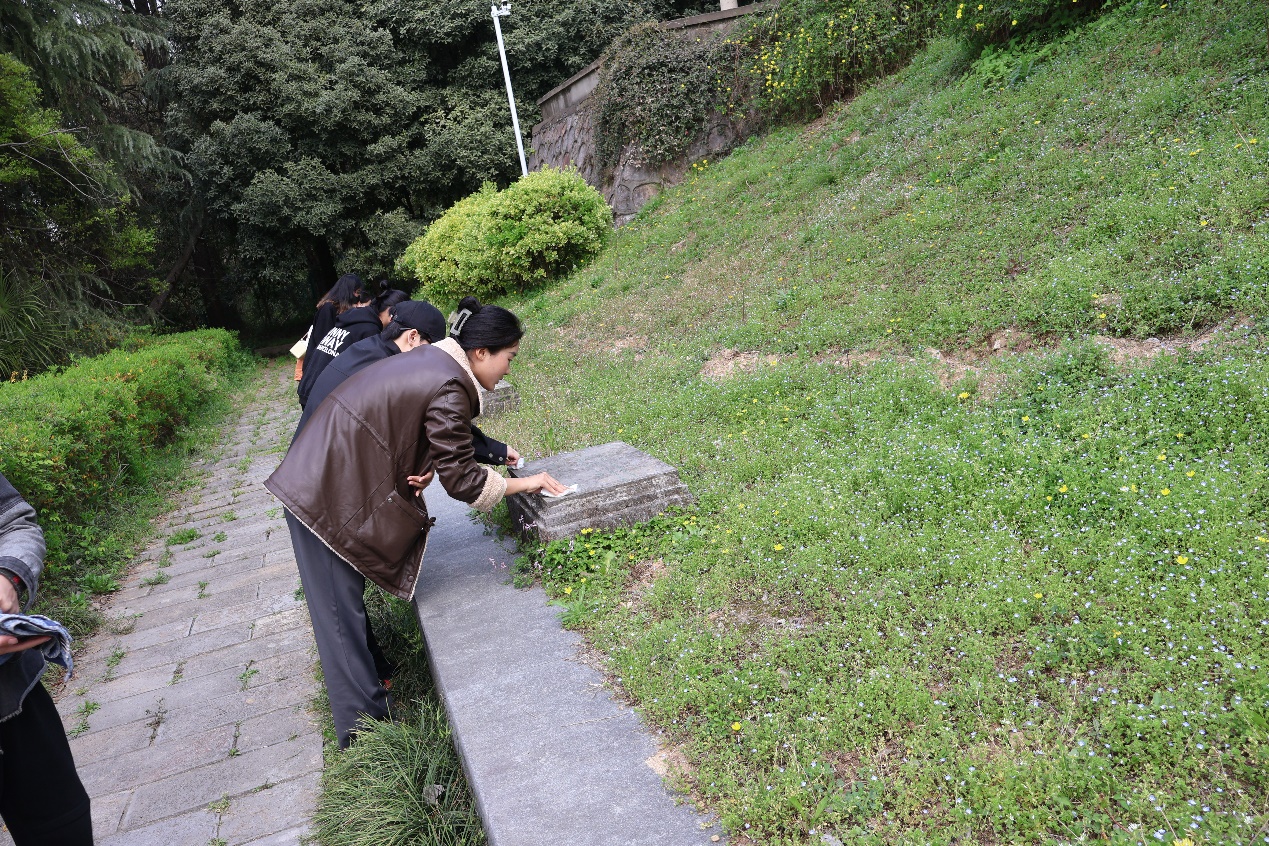 进入纪念馆内,志愿者们首先步行至烈士衣冠冢前,小心翼翼地擦拭着,怀着对先人的崇敬,让这个清明藏着脉脉情深。擦亮青石卧碑,唤醒一段尘封的历史,能让大家在铭记历史中汲取精神力量,在抚今追昔中坚定前行意志。春风送花表哀思,青松滴翠寄深情。在庄严肃穆的抗日航空烈士纪念碑前,志愿者们向革命烈士敬献花束并深深鞠躬,深切缅怀革命烈士的丰功伟绩,感恩先辈们用鲜血换来我们今天的美好生活。随后,志愿者们又参观了纪念馆,瞻仰了馆内陈列的烈士事迹和文献资料,重温革命先烈的光荣事迹,感受他们的伟大信仰。一幅幅照片、一件件文物、一个个场景,革命先烈们崇高的道德理想和高尚的道德情操让参观的每一位同学都深受教育。
