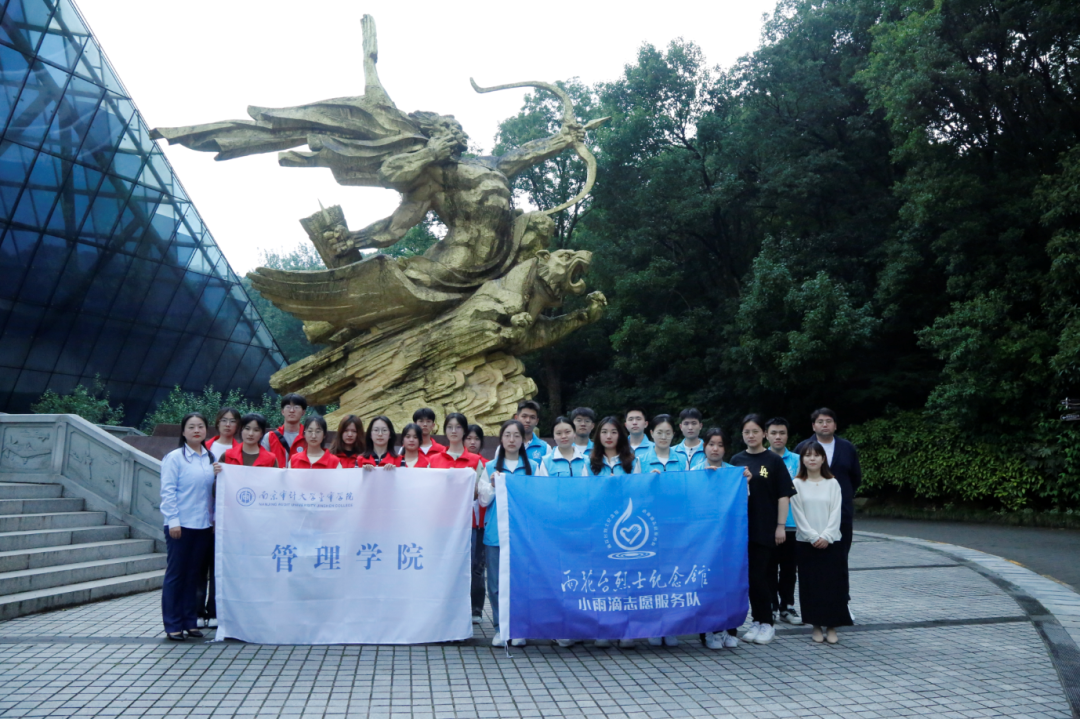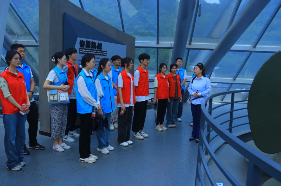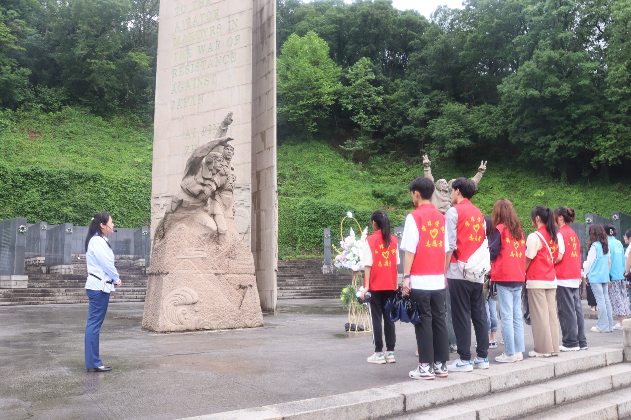 聚青年炬火,照传承之路。活动开始,全体志愿者在讲解员慷慨激昂的解说声中走进纪念馆,古朴又肃穆的环境让人沉思,大家仿佛置身于那个艰苦卓绝的抗战年代,深切感受到了先烈们为了民族解放抛头颅洒热血,“青山处处埋忠骨,何须马革裹尸还”的悲壮情怀。在讲解员的带领下,大家重温了入团誓词,增强了青年团员的责任感和使命感。抗日烈士纪念碑与墓园区庄严肃穆,长眠于此的抗日航空英烈们与青山作伴,在时光中不朽。志愿者们缓步登街,来到纪念碑前敬献鲜花,向抗日英烈们致以崇高的敬意与无尽的追思。