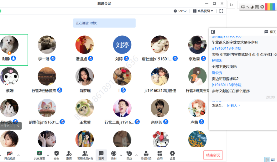 因部分学生未返校,本次会议采用线上腾讯会议形式,主要围绕毕业论文材料修改、答辩要求、答辩安排、答辩流程等方面展开。