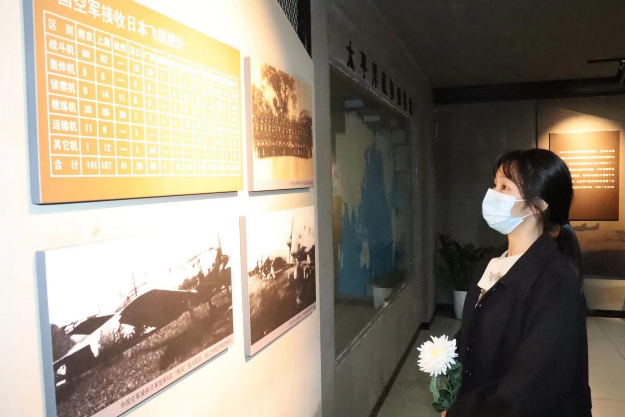 仰望历史长空,家国情怀熠熠生辉。抗日航空纪念馆由奋勇抗战,国际援华,壮志凌云,缅怀先烈四个室内馆区和陈列雕像,战机模型两个室外展区组成。大一新生怀揣纪念敬畏之心参观各展区,全面了解中,美,苏等国空军在华夏大地上联合抗击侵华日军的历史背景,深切体会航空烈士为和平而战所付出的艰辛。最后,我们前往南京航空烈士公墓献上菊花以表祭奠之意。公墓英士碑上镌刻的中外抗日航空烈士的名字都是那个奋战岁月的见证,也警示着当今世人勿忘历史。
