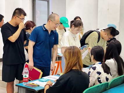 再看负责引导新生的志愿者们,无论是高铁站、宿舍楼、军训服装发放点,还是学校的各个角落,到处都有他们明亮的身影,是忙碌而始终热情的志愿者们构成了这个夏末最亮丽的风景线,场外的他们不管酷暑的烈日和灼晒,仍然有条不紊地按照上级派发的要求引导新生报到,他们仿佛拥有超人般的能力,一件件沉甸甸的行李轻松搬运,一次次突发状况都能顺利解决,他们不仅是迎新的志愿者,更是以身作则的校园“使者”。