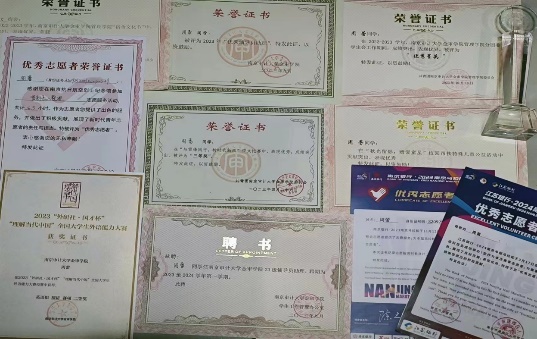 多次参加校内外志愿活动,如南京仙林半程马拉松、南京站新街口站点执勤志愿活动,积极参加各类学科竞赛及活动,获外研u词全国三等奖、词达人校赛二等奖、老照片的故事一等奖、书评大赛优秀奖等。同时,获时代新人先进典型、优秀志愿者、优秀菁英等荣誉称号。