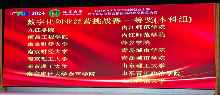 2024年11月16日,由iCAN大学生创新创业大赛组委会主办、江苏大学承办,虚拟仿真创新联盟经济与管理专业委员会、江苏一鼎堂软件科技有限公司协办的2024iCAN大学生创新创业大赛数字化创业经营模拟挑战赛全国总决赛在江苏大学举行。