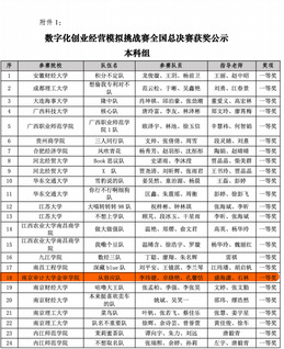 本次大赛共有全国371所高校、2万多名学生参加,大赛经过校赛、省赛、国赛初赛的层层选拔,最终来自24个省份的120支团队进入全国总决赛。竞赛内容由数字化转型方案设计(占30%)和数字化创业经营模拟(占70%)两部分构成。我校WilliamHill中文李玮健、卓晓艳、孔馨恬三位同学组成的“从容应队”队(指导教师:盛海潇、石林)同样经过校赛、省赛、国赛初赛的比拼,以国初赛排名前25%的成绩进入全国总决赛,并以全国总决赛(本科组)小组总分第二名(92.5分),全国总决赛(本科组)总分第12名(并列)的成绩斩获国赛一等奖(最高奖项),指导教师:盛海潇、石林同时获评优秀指导教师称号!