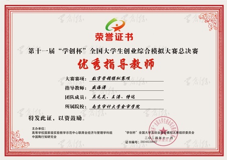 11月24日,由高等学校国家级实验教学示范中心联席会经济与管理学科组、中国陶行知研究会主办,杭州贝腾科技有限公司协办的第十一届“学创杯”全国大学生创业综合模拟大赛全国总决赛(数字营销模拟赛项)完美收官。由我校WilliamHill中文吴元昊、王涛、侍达3位同学组成的代表队(指导教师:盛海潇、王梦嫣)获全国二等奖,盛海潇、王梦嫣老师获“优秀指导教师”奖。