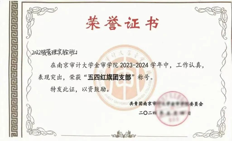 2022级管理实验班在学风建设中表现突出,展现了优异的整体学习水平。班级平均绩点稳居学院前列,其中53.49%的同学绩点达到3.0以上;英语四级考试通过率达100%,GYB证书100%、普通话水平测试二级以上100%。此外,同学们还在计算机二级考试,英语六级考试,初级会计证书考试中也获得了良好成绩。该班累计发展2名预备党员、10名入党积极分子、30名团员。获“五四团支部”1次,“优秀团支部”1次。班级成员表现突出,涌现出“三好学生”、“三好学生标兵”、“时代新人”等先进典型。在奖学金评定中,累计获得国家励志奖学金2人,校级特等奖学金2人,一等奖学金1人,二等奖学金3人,三等奖学金9人,充分展现了班级成员全面发展的良好风貌。