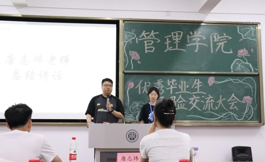 活动尾声,管理学院分团委书记唐志炜老师进行总结发言。他对优秀毕业生们的精彩分享表示感谢,充分肯定了他们取得的优异成绩,并鼓励在校生以学长学姐为榜样,明确目标,提前规划,脚踏实地,努力奋斗。