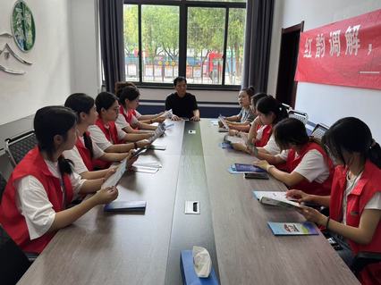戴埠镇司法所专职调解员老杨热情接待了实践团成员。作为拥有十余年基层工作经验的“老黄牛”,老杨自2006年投身村委工作、2007年担任村委书记以来,始终扎根乡村矛盾化解一线。农村纠纷往往牵扯人情法理,从宅基地边界争议到邻里口角摩擦,从意外事故赔偿到家庭财产分割,每一起案件都关系着村民的切身利益。每当矛盾出现,老杨总能第一时间赶到现场,用“一把钥匙开一把锁”的耐心,将情理说透、事理摆清、法理讲明,在拉家常中化解心结,在算明白账中消除隔阂,真正做到“案结事了人和”。
