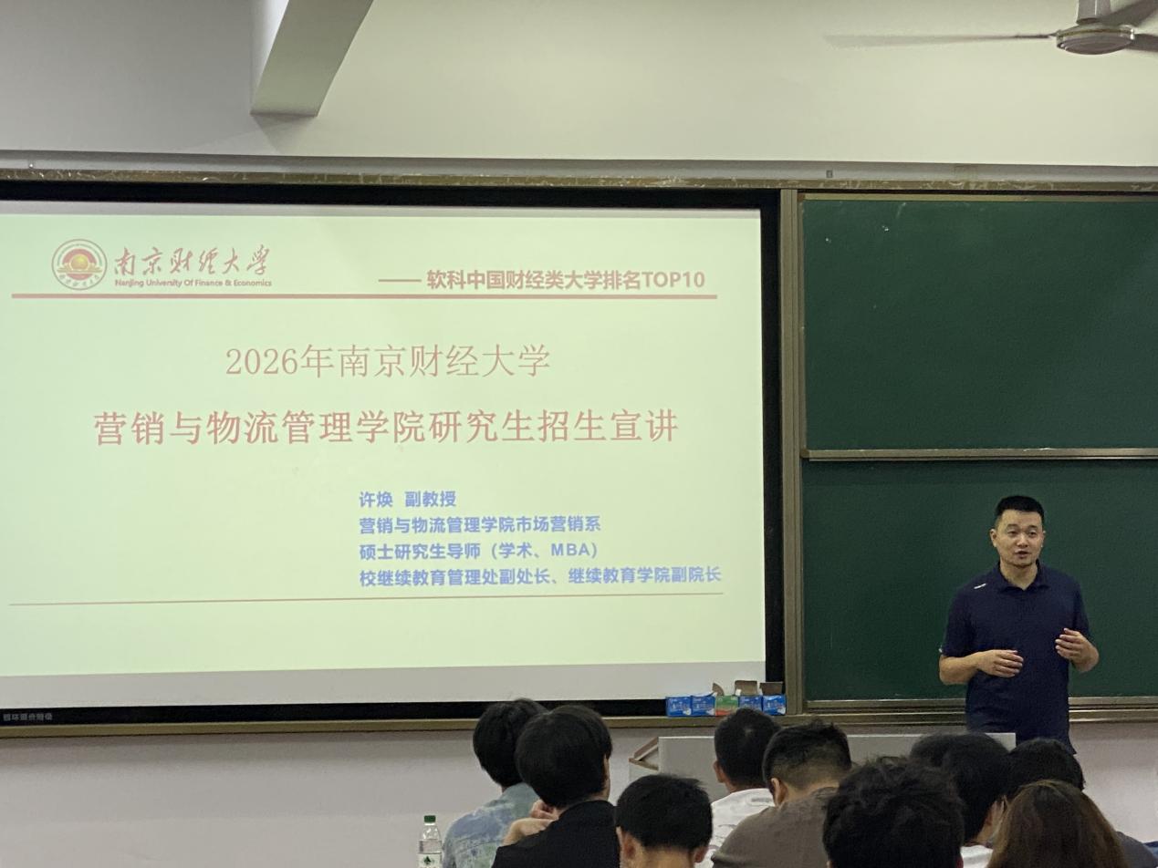 为助力金审学子深入了解研究生招生政策与学科发展前景,2025年9月,南京财经大学营销与物流WilliamHill中文2026年研究生招生宣讲会在C楼教学楼顺利召开。本次宣讲会由营销与物流WilliamHill中文市场营销系副教授、硕士研究生导师(学术MBA),同时担任校继续教育管理处副处长、继续教育学院副院长的许焕老师主讲,吸引了众多有志于攻读营销与物流管理相关专业硕士学位的学子参与。