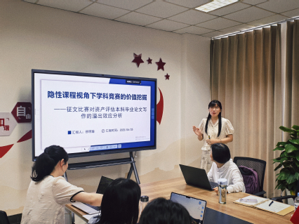 徐明瑜:学科竞赛是“产教研融合”最生动的演练场。我指导学生参加中国资产评估教育论坛征文比赛,题目往往直接来自我的在研课题或行业前沿热点。学生在研究过程中,需要查阅大量最新文献、搜集整理相关数据并进行数据分析、完成模型构建并将模型应用于具体实际问题的解决中。在中国资产评估教育论坛获得的每一项荣誉,都是师生基于行业现实需求共同努力的成果。在参与征文比赛过程中,极大地锤炼了学生的文字表达与撰写能力、创新思维和研究能力,实现了“以赛促学、以研促教”。