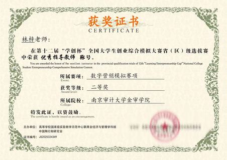 在2025年iCAN大学生创新创业大赛“鼎堂杯”数字化创业经营模拟挑战赛全国总决赛中,林梓老师指导的学生团队表现亮眼,其中“畅通无阻”队斩获一等奖(最高奖项),“CAN”队荣获三等奖,她也凭借出色的指导表现,获评该赛事全国总决赛优秀指导教师。此外,她还指导学生参加“学创杯”全国大学生创业综合模拟大赛等赛事,均取得了优异成绩,用实际行动为学生搭建起实践与创新的平台。